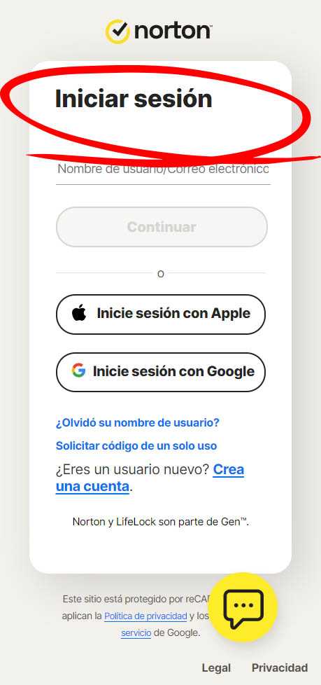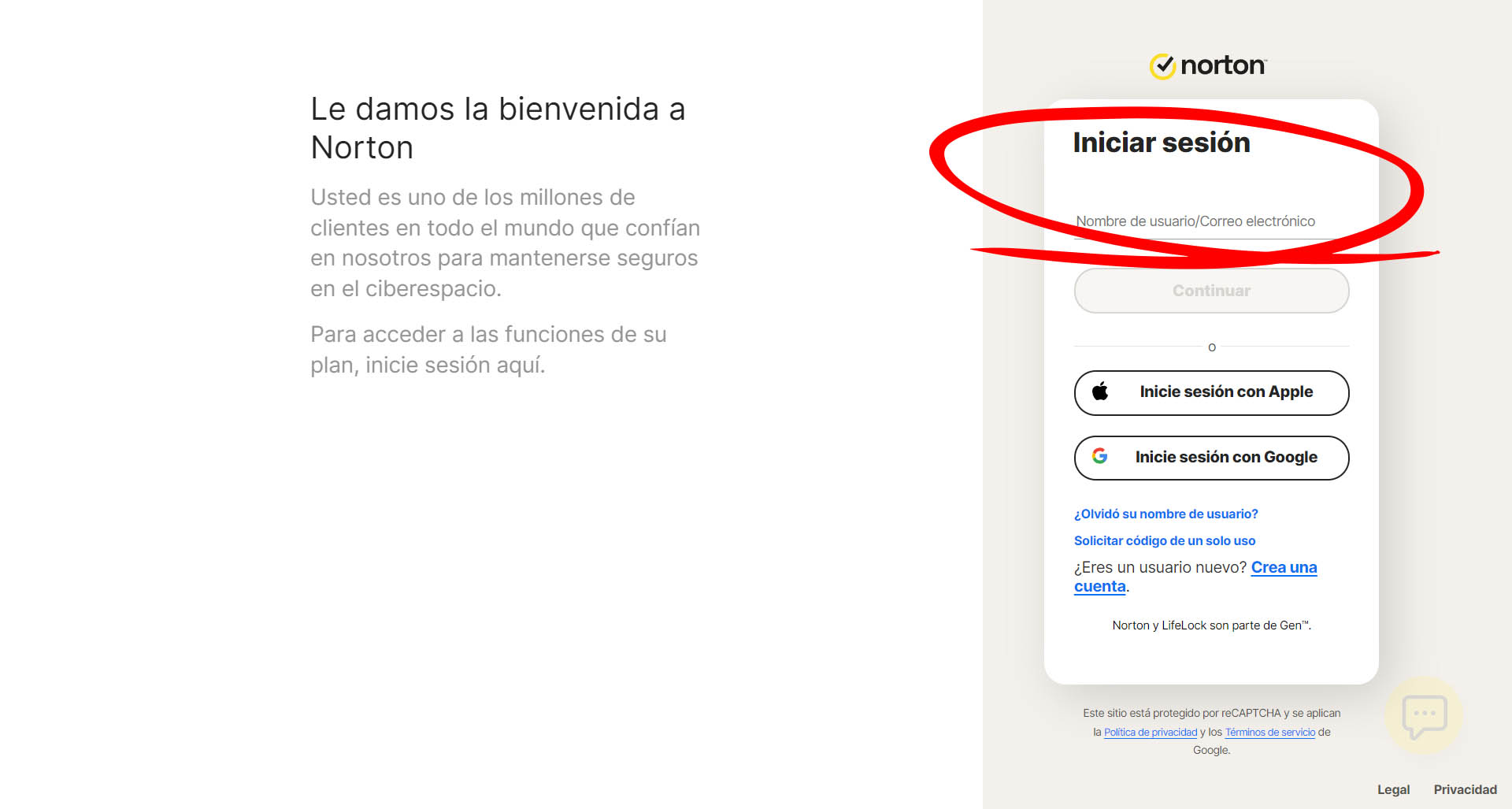 Inicia sesión con tu Cuenta de Norton en la URL https://norton.cykadas.com/telcel