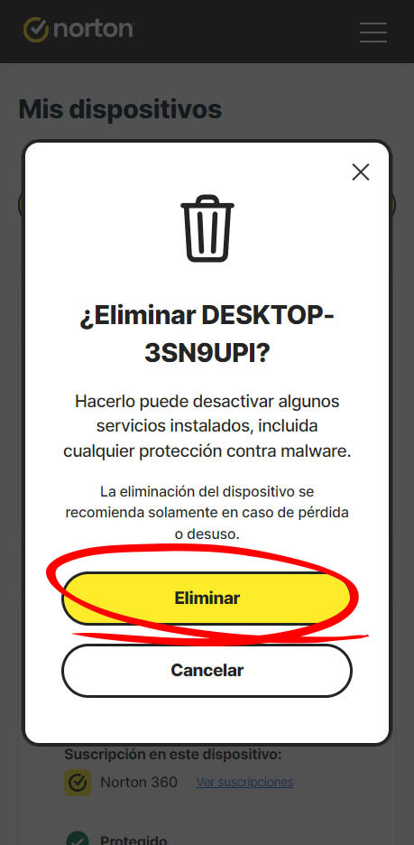 Se abre una venta preguntando si deseas eliminar ese dipositivo. Confirme dando clic en botón "eliminar".