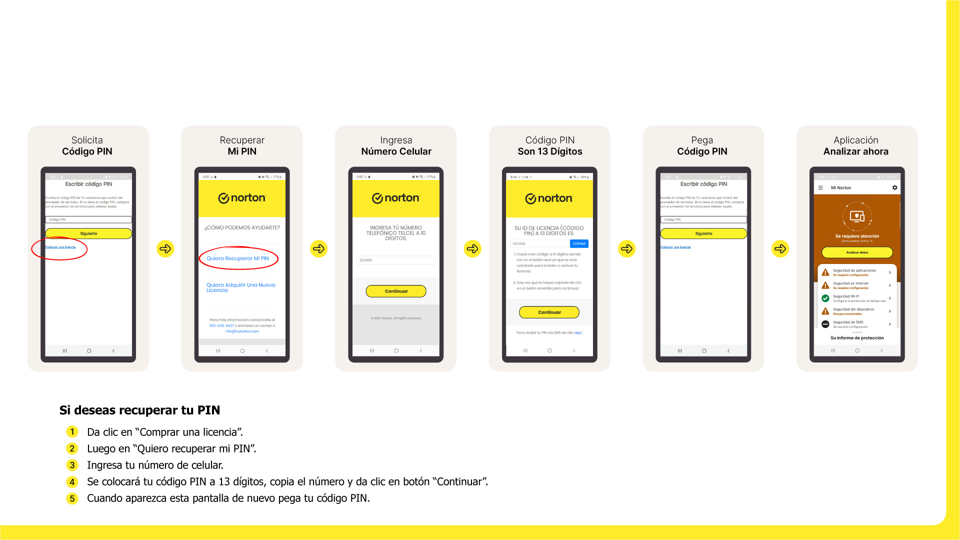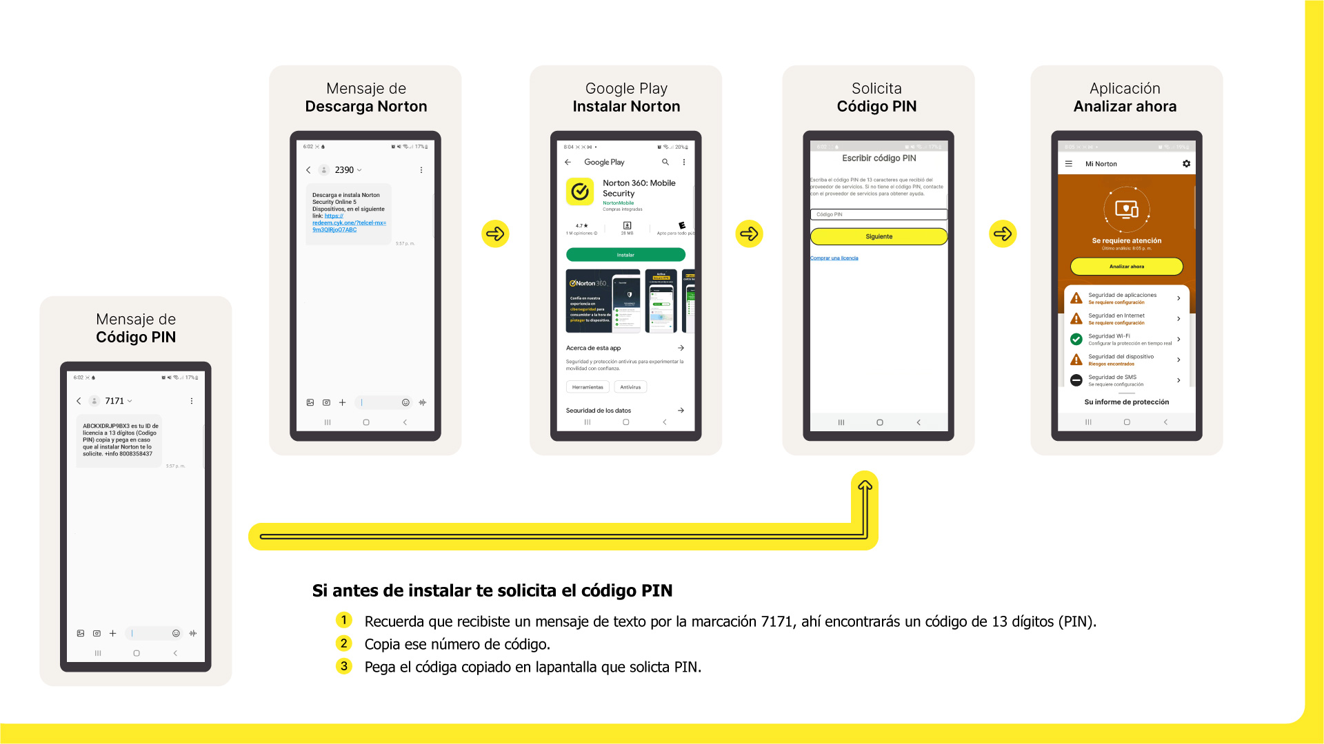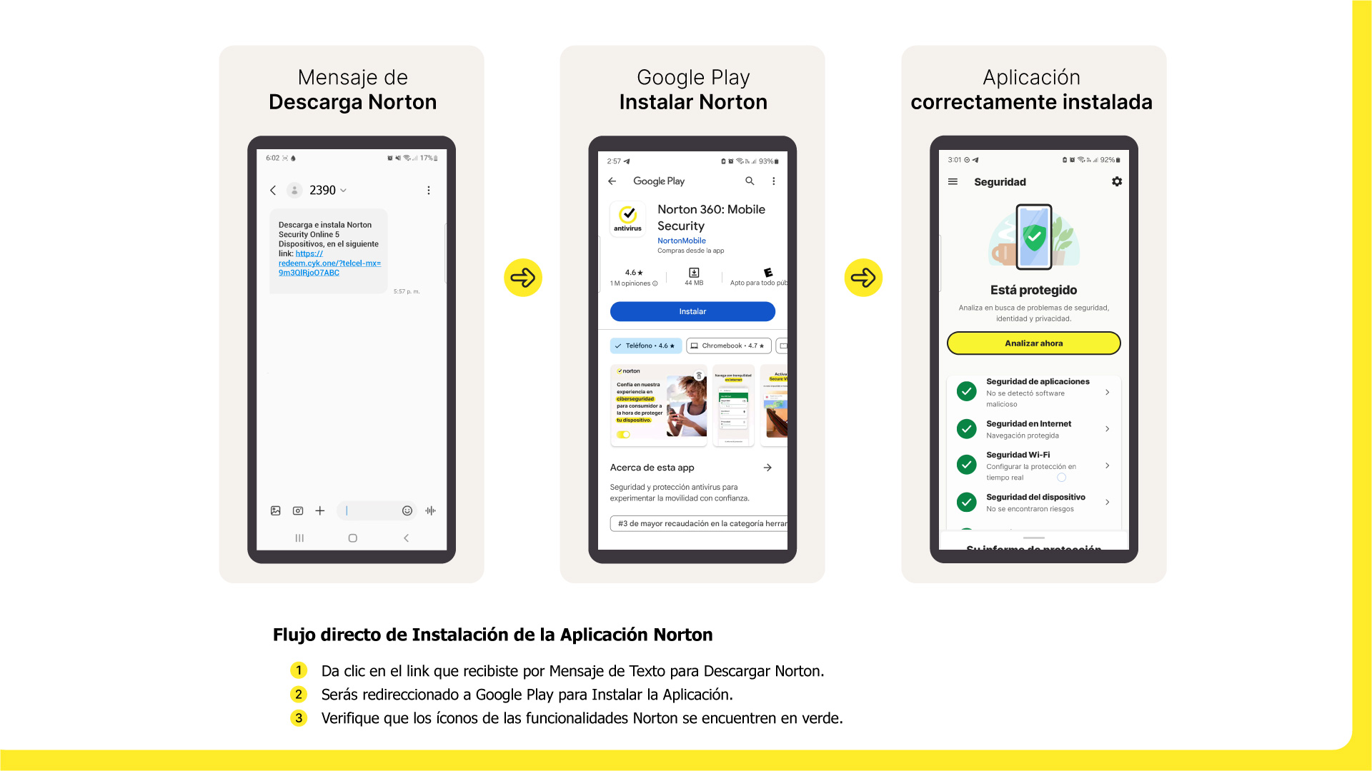 Recuerda que cuando das clic en el enlace para instalar tu licencia Norton Security, debes hacerlo desde el dispositivo que desees y en automático te enviará a la aplicación Google Play Store.