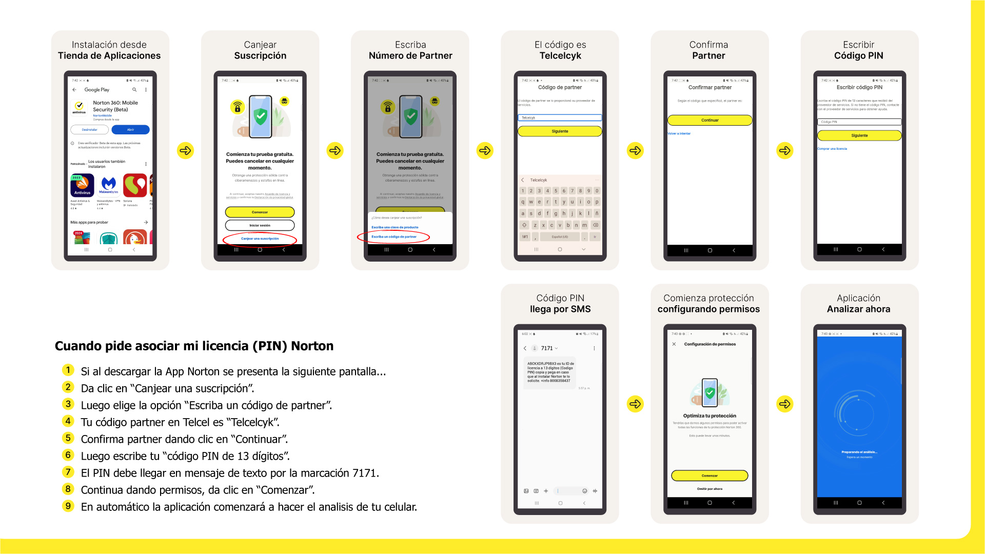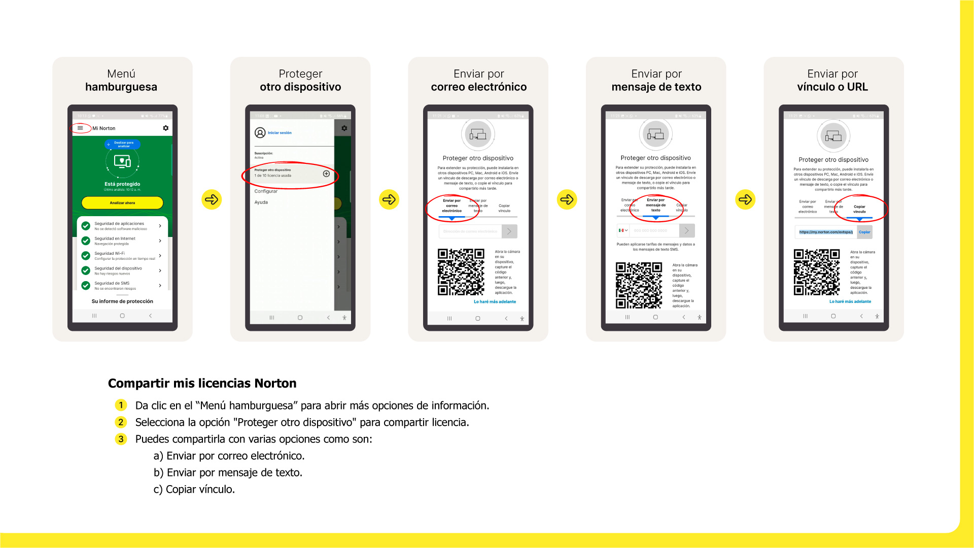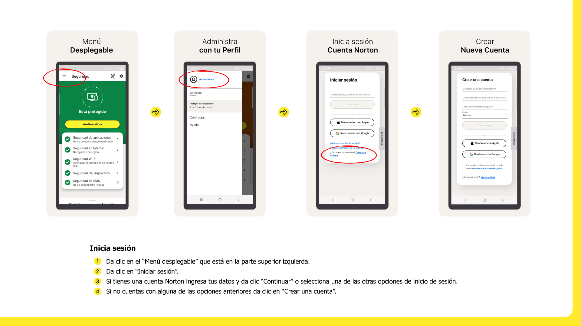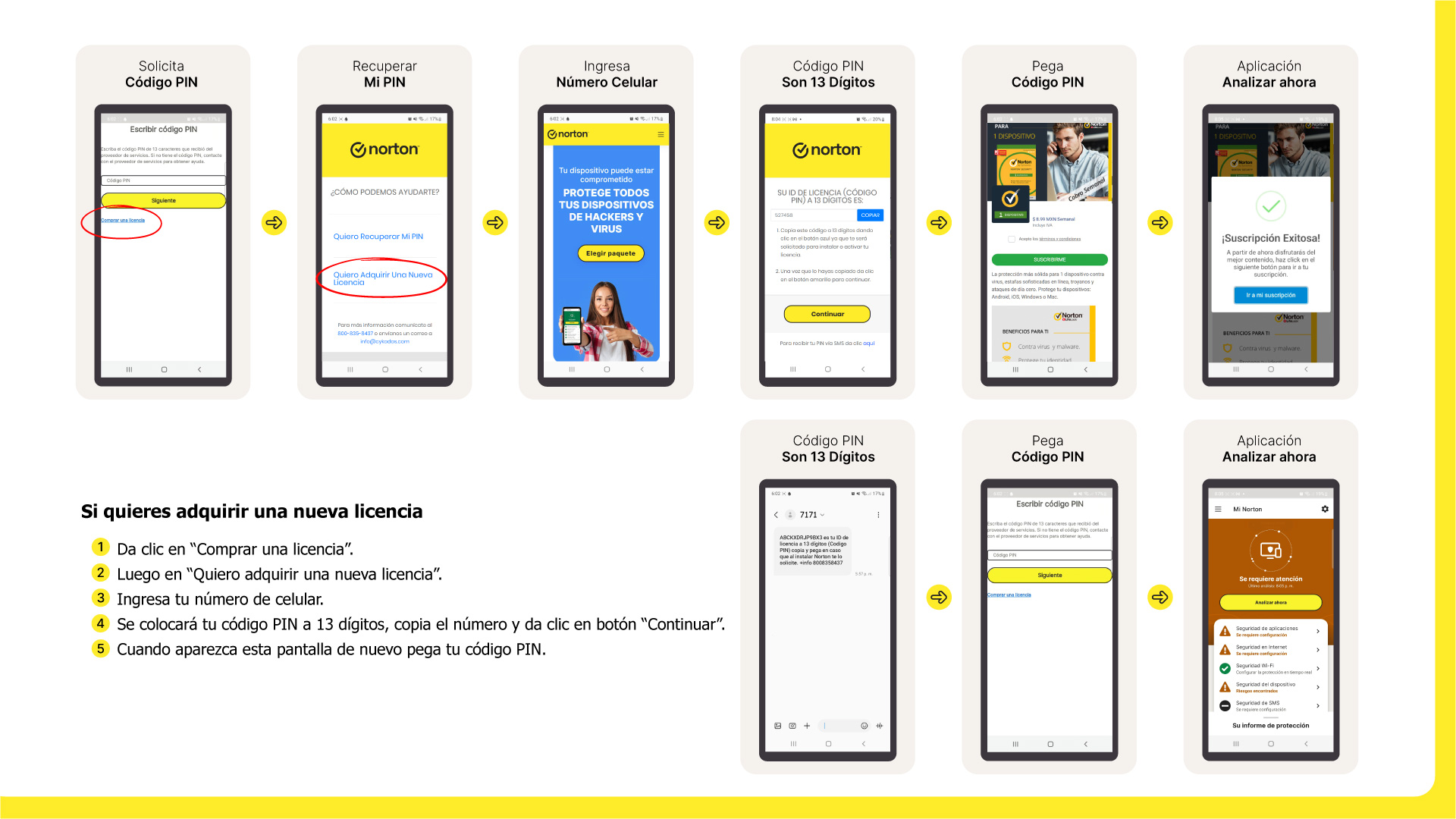Recuerda que cuando das clic en el enlace para instalar tu licencia Norton Security, debes hacerlo desde el dispositivo que desees y en automático te enviará a la aplicación Google Play Store.