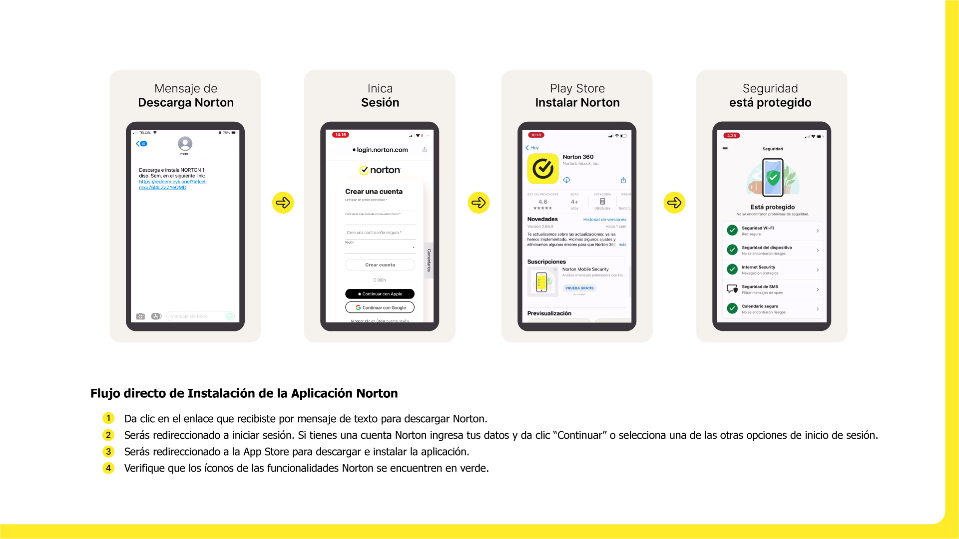 Recuerda que cuando das clic en el enlace para instalar tu licencia Norton Security, debes hacerlo desde el dispositivo que desees instalarlo y en automático te enviará a la aplicación App Store.